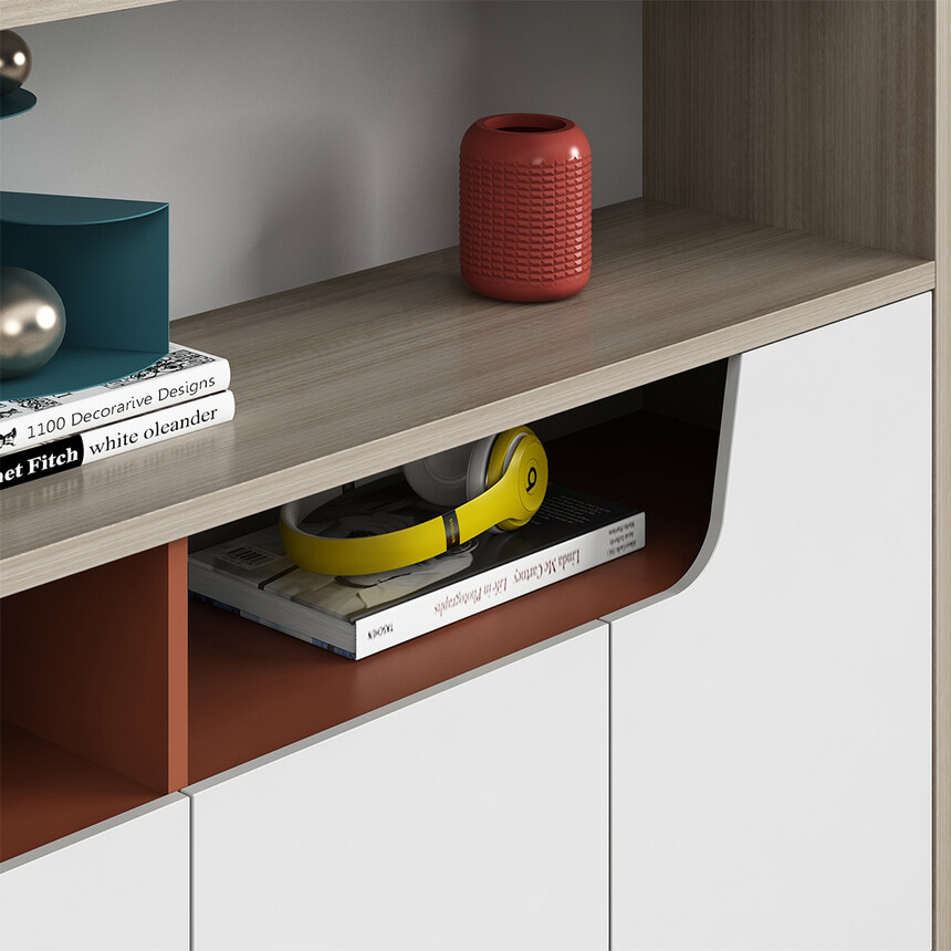 优格又名“有格”,代表了有品格、有格调。产品整体以“青春、时尚、动感”为设计主题,采用了大量的弧形与直线条交叉设计,将产品魅力展示的淋漓尽致。在一贯沉稳的深色办公配色中,大胆运用了白色、卡其棕色与浅色木纹的撞色搭配,打破产品配色原有的严肃氛围,赋予了产品生命力以及活力。独特的台脚与桌屏设计,动感十足,无不展示产品的细节之美。产品设计时尚,配置齐全,适合各种规模的办公场所。